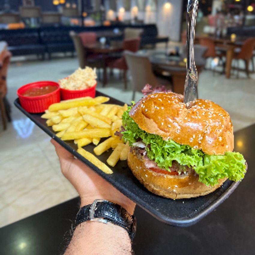 دو ورق برگر گوشت،دیپ چدار،کاهو،گوجه... دو ورق برگر گوشت،دیپ چدار،کاهو،گوجه،سس،فرنچ فرایز450 هزارتومان